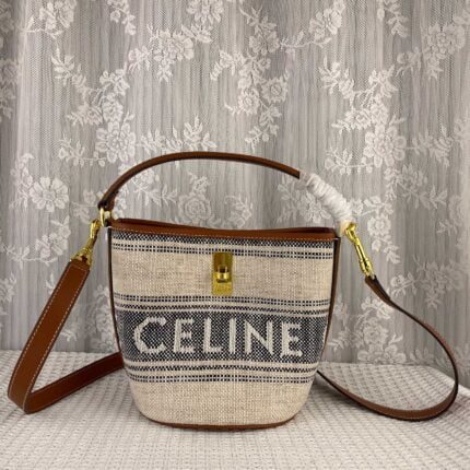 CELINE Mini jacquard stripe fabric cow leather bucket bag with little wallet Size:23*25*23CM