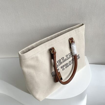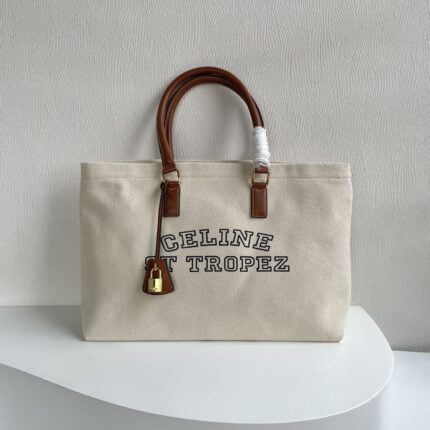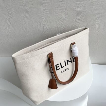 CELINE horizontal printed canvas and calfskin handbag white Size: 44*32*16cm