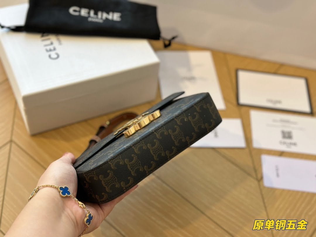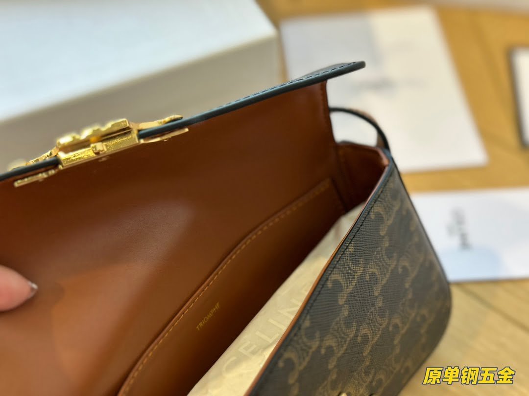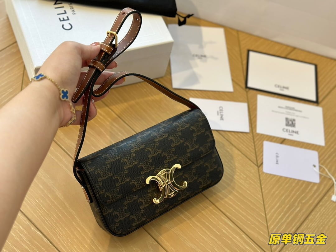celine Arc de Triomphe double C buckle is its own Vintage style, more like a dark horse killed on the show, people are fascinated by its elegant shape, but also think that this is not a copy of vintage handbags! TRIOMPHE’s glowing leather, as well as the internal structure of the bag is almost the same as the box, there are multiple compartments to distinguish, the capacity is quite sufficient, the shoulder strap can be adjusted length, suitable for a variety of building methods! Size 19*15