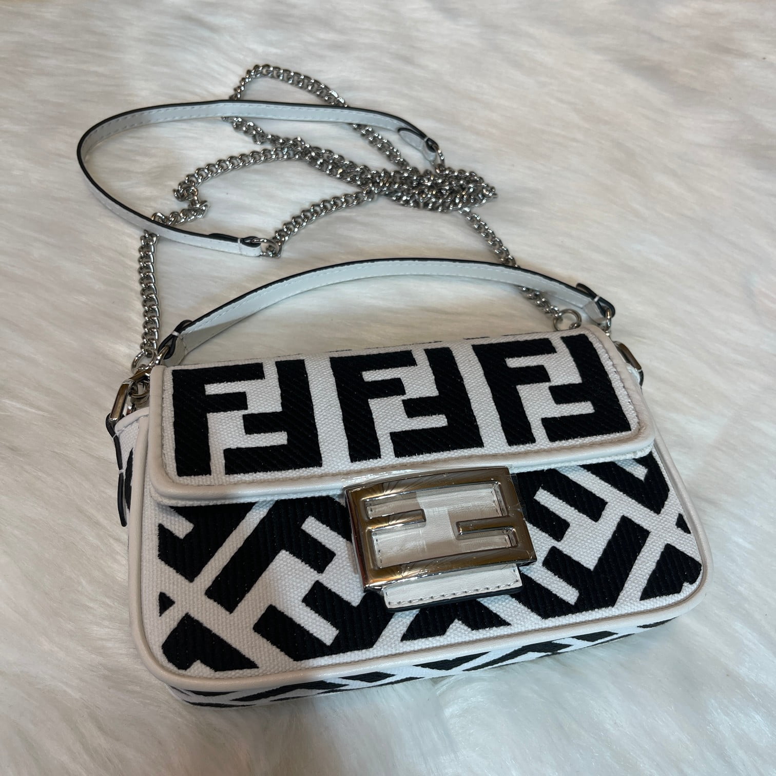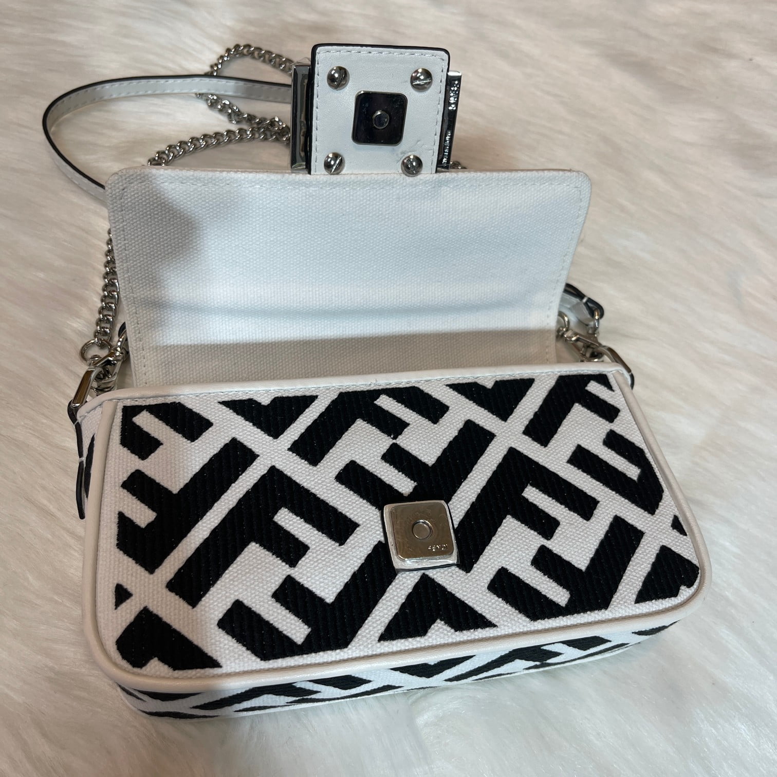 FENDI BAGUETTE Embossed design White Handbag F0191 Size: 26x5x15cm