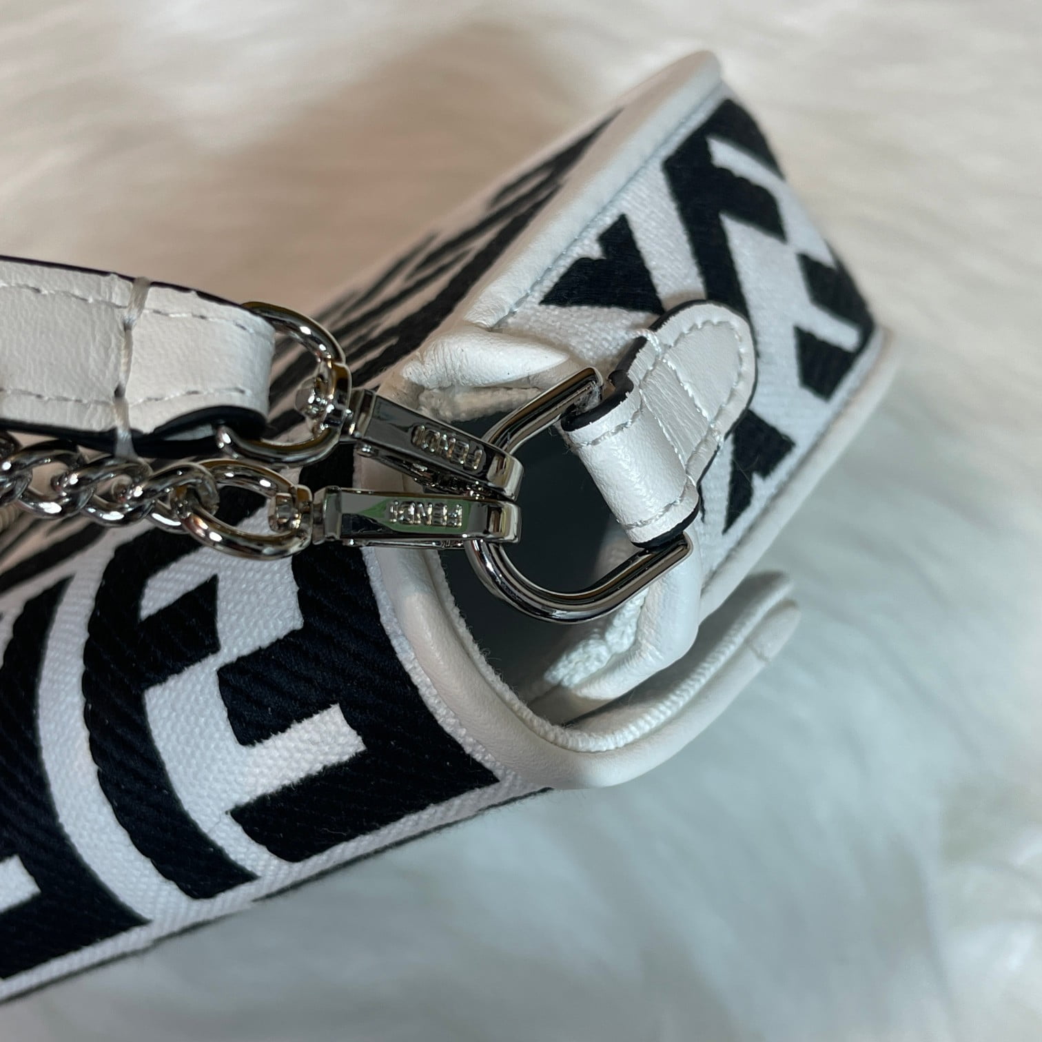 The latest version of the original 2023 Fendi latest baguette bag: very summer atmosphere; F Embroidery black and white color. This Fendi Baguette is sure to be a trendy item this summer! It looks great on the top; Attendance is also particularly high; It’s absolutely fine for a concave shape. Very lightweight. And its capacity is also very powerful; Easily meet your daily needs. With a short strap and a long shoulder strap; Can be carried on one shoulder and crossbody. Very versatile. It’s easy to wear no matter what style you have. Carry it and you’ll be the brightest goddess in the crowd. Model F2029 size:19-5-15CM