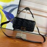 Clamshell magnetic snaps. Equipped with FF magnetic buckle. Lined with zipper bag. With removable shoulder strap, handbag can be shoulder or crossbody. (Sheepskin). Decorated with FF embossed pattern. Gold metal part number F0191