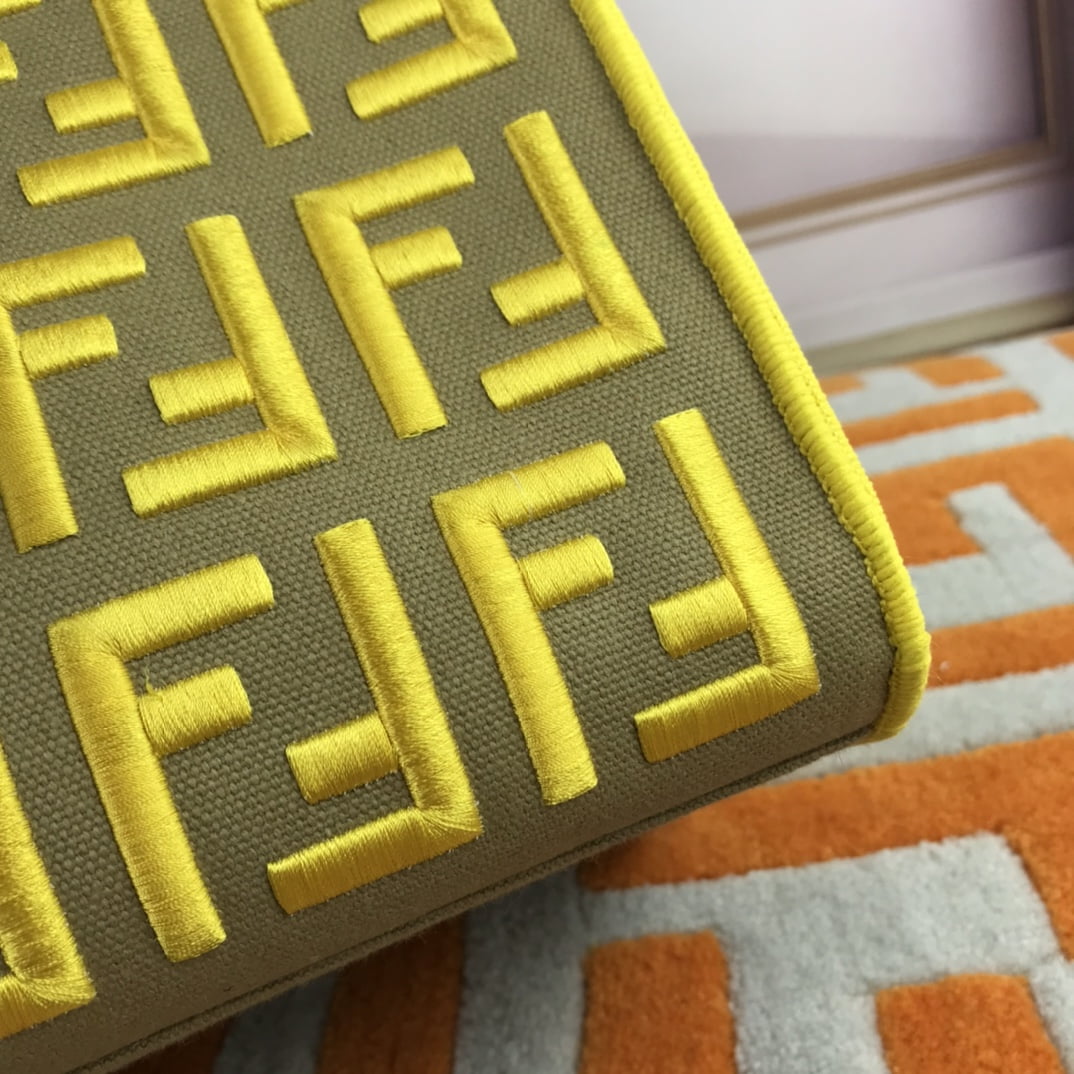 FENDI peekaboo Canvas Tote with mobile phone bag yellow 2118 Size: 37*32 cm