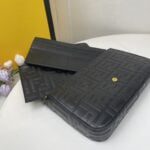 【FENDI】 Fendi’s latest geometric clamshell mini handbag with hardware accessories including the Fendi logo. Adopts the button opening and closing type, with two detachable inner bags – one with zipper, one with 8 card slots. Detachable chain strap. Lining with flat pockets. Black hand relief FF print. Gold metal pieces;