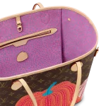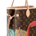Dreamed up for the exceptional Louis Vuitton x Yayoi Kusama collection. the LVxYK Neverfull MM features a print inspired by a recurring theme in the celebrated Japanese artist’s work. Kusama has long been enchanted by pumpkins. which she prizes for their warmth and amusing shape. Here her stylized dotted pumpkins appear in bright colors on the House’s signature Monogram canvas. A practical bag and an ode to creativity and craftsmanship.