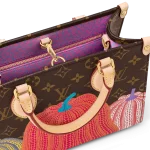 For the Louis Vuitton x Yayoi Kusama collection. the LVxYK OnTheGo PM captures the spirit of the Japanese artist’s work with a unique and creative print. Kusama has made pumpkins a visual signature. an emblem of her irrepressible energy and enthusiasm. For this user-friendly bag. Monogram canvas is embellished with a series of pumpkins in warm colors. And it comes with a separate pumpkin-print coin purse on the strap.