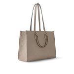 For Spring 2021. Louis Vuitton launches the Onthego MM tote bag in grained Monogram Empreinte. a soft leather that is embossed with a large and modern Monogram pattern. Thanks to the square shape. it boasts a generous capacity and can easily fit a laptop. Its articulated top handles and shoulder straps give carrying options.