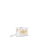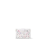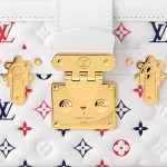 The Petite Malle Tricolore is made from white lambskin with a Monogram in red, white, and blue, the colors of the French flag. The gold-color S-lock and clasps and white cowhide-leather trim complete Nicolas Ghesquière’s celebration of the House’s French heritage. It can be carried like a clutch or with its removable and adjustable strap.