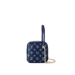 Made from Monopaname lambskin, the Square Bag features a green-and-blue Monogram pattern, evocative of the colors of a Parisian street-sign. Its unique shape, almost a cube, is striking and yet it is a practical bag, easily holding daily essentials. A leather top-handle and removable chain give carry options.