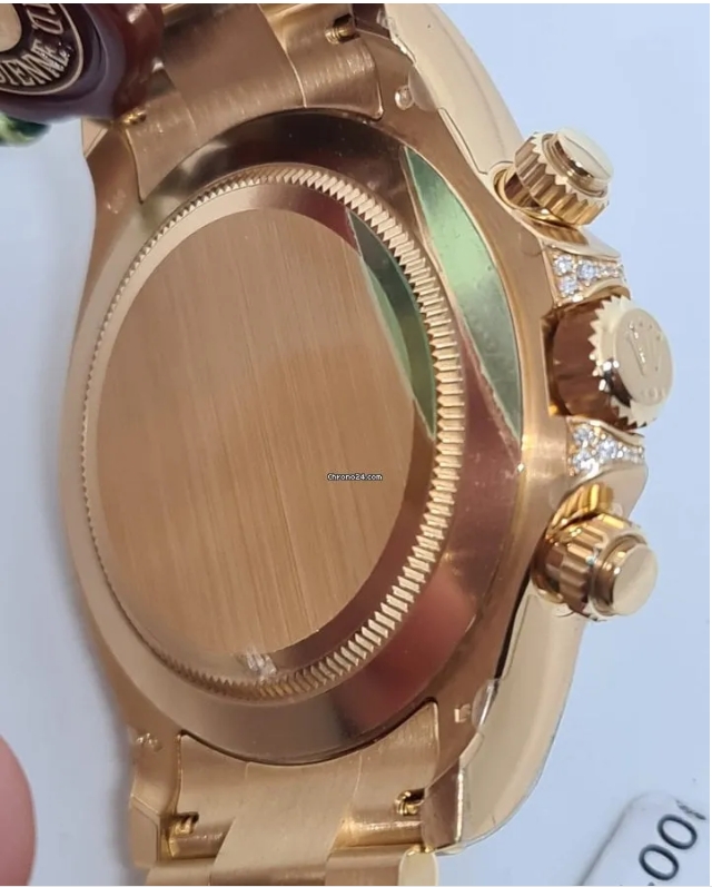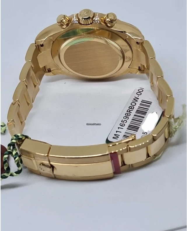 Men’s Rolex Daytona 40mm Yellow Gold, Black Dial on Oyster Bracelet, Reference # 116506 ib-1 with Fixed Yellow Gold Gemstones Set bezel. You can get an unworn like new timepiece from us as well as pre-owned Rolex Ref# 116506 ib-1.