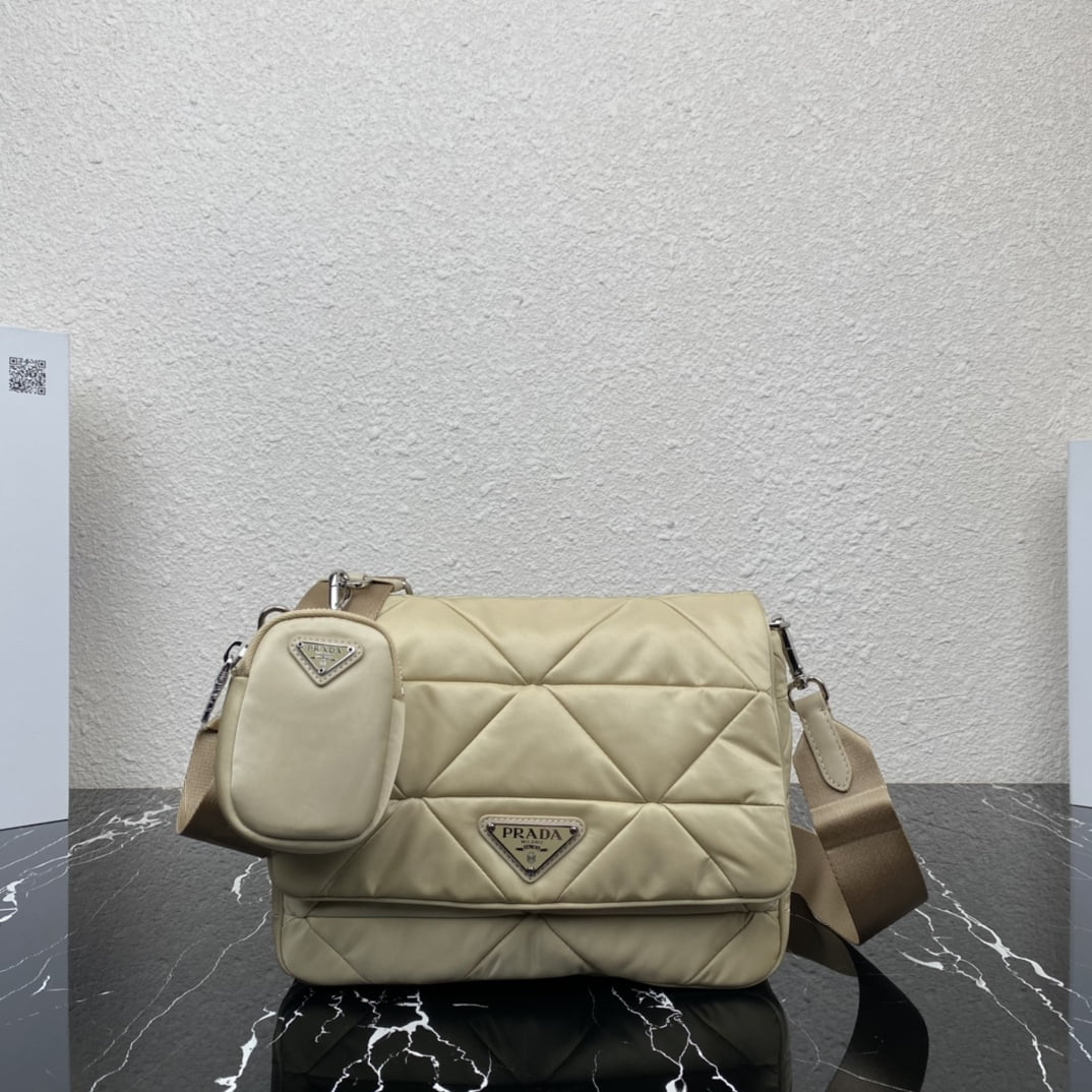 The new large 3-in-1 🎉1BD290👏👏 Prada’s iconic triangular logo is restyled into a stitching pattern for this soft-lined Re-Nylon recycled nylon shoulder bag. The sustainable Re-Nylon recycled nylon material shows the evolution of Prada fabric selection. The mini pouch is attached to the shoulder strap for a modern touch, and the front is decorated with a classic enameled triangle logo for brand touch. 👏👏 Dimensions: Length 24cmx height 17.5cmx bottom 8.5cm